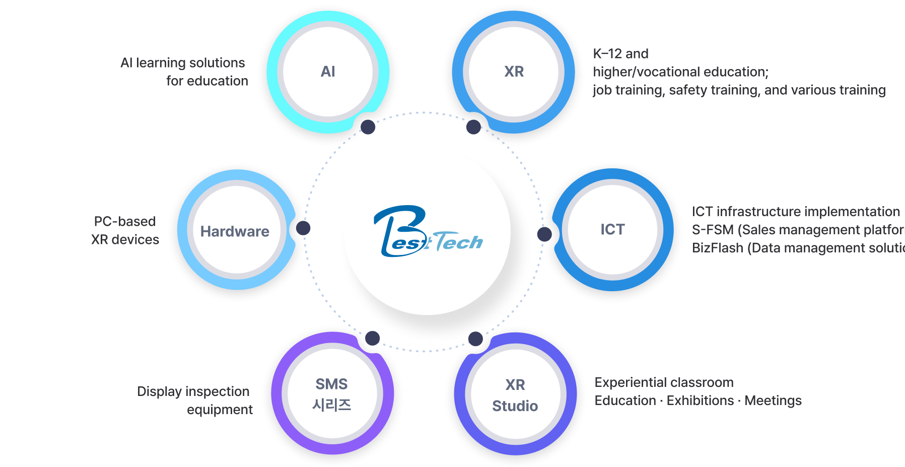 Leveraging XR (extended reality) and AI, we realize “Creative Integrative Tech that connects the future.” Through differentiated capabilities across XR content, AI platforms, and XR studios, we provide effective experiential learning.